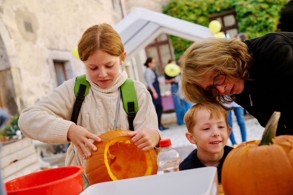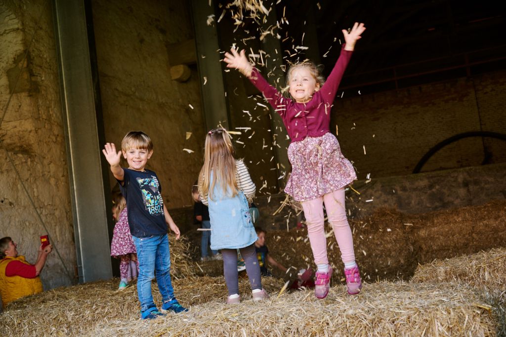 Langeweile konnte nicht aufkommen, vor allem die Kids hatten riesigen Spaß. Besonders begehrt war beispielsweise der Kinderschmied. Dort konnten die Kleinen ein Glückshufeisen selber schmieden, Lederbeutel erstellen oder Papier schöpfen. Viel Freude hatten sie auch beim Herstellen von Kräutersalz. Zudem wurde viel Wissenswertes spannend vermittelt – so etwa beim anspruchsvollen Pferde- oder beim Wald Quiz am Stand der Förster. Wer dann noch Energie hatte, konnte in der Strohscheune fröhlich von Heuballen zu Heuballen hüpfen!