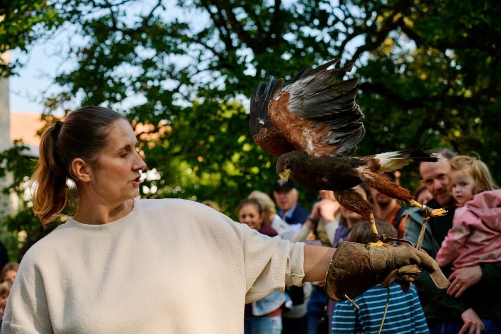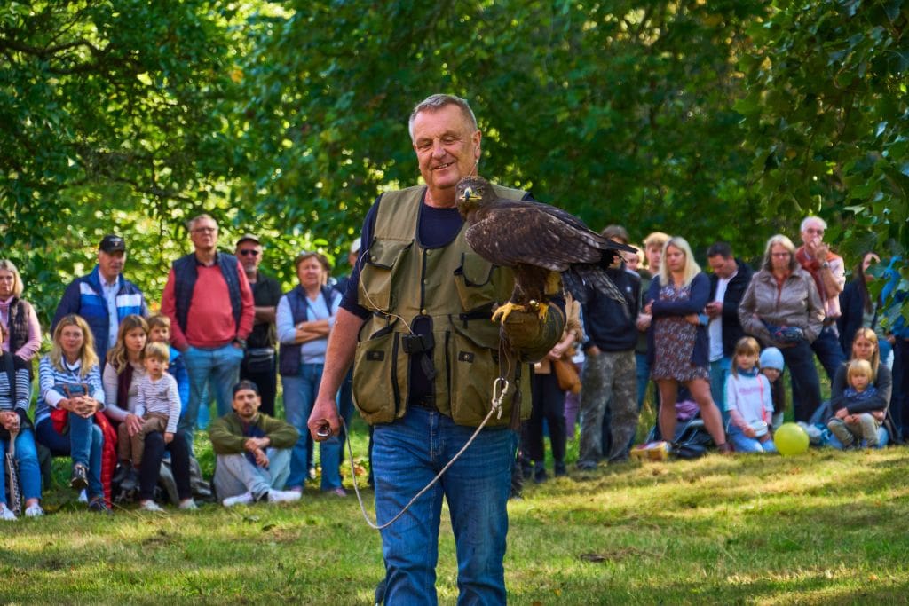 Nach einem berührenden Gottesdienst mit Gutspfarrerin Inka Baumann konnte jeder die Angebote rund um den Wirtschaftshof, im Gutspark und auf einer nahe gelegenen Ackerfläche in Augenschein nehmen. Gar nicht so einfach, sich zu entscheiden bei der großen Vielfalt der Vorführungen und Aktivitäten, die im Eintrittspreis inbegriffen waren. Die Besucher konnten Falkner Olaf Wahle bei einer Flugshow zuschauen, live miterleben, wie Hütehunde der Schäfer-Familie Weihe eine Herde scheinbar mühelos beieinander halten oder verfolgen, wie Jagdhunde der Jägerschaft Wolfenbüttel aufs Wort gehorchen. Nicht zu vergessen die niedlichen Alpakas, die natürlich jeder einmal streicheln wollte.